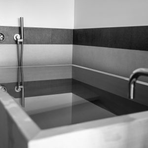 We are proud to supply genuine Japanese ofuro for commercial projects such as hotels, wellness centers, spas etc. Our founder is a licenced architect who speaks Italian, English and Japanese. Please do not hesitate to contact us if your client is dreaming of a Japanese onsen in their commercial establishment. 1) Materials used are Hinoki B grade (small knots), Koyamaki (Knotty) Asnaro wood and Sawara (for barrel type tubs.) We strive to provide the best prices while remaining faithful to our concept: only old growth lumber from the Kiso Valley or Aomori prefecture. No imported wood or man planted lumber is used for the tubs. 2) In the case of orders for multiple tubs, we can ship in full load containers thus reducing the shipping cost. 3) The tubs are pre-assembled but in case of necessity, we can send a carpenter on site to assist with the installation. 4) We can supply accessories such as stools, buckets, duckboards and lumber for millwork to match the ofuros. * Note: essences of the hinoki family cannot be used in saunas as their aromatic oil content would be released in large quantities and would cause eye irritation. Please contact us for more information and alternative suggestions. VIEW THE GALLERY BELOW TO SEE SOME OF THE AWARD WINNING BUSINESSES WE HAVE WORKED WITH