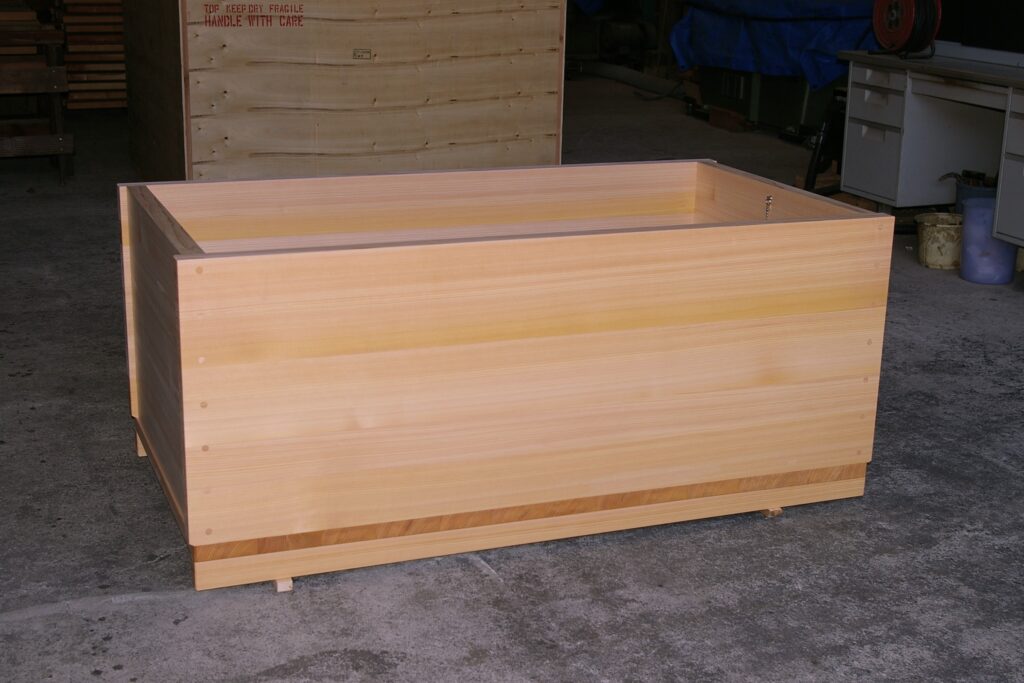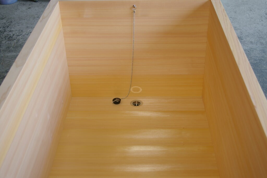 Material: knotless natural Sawara wood bathtub with thicker planks