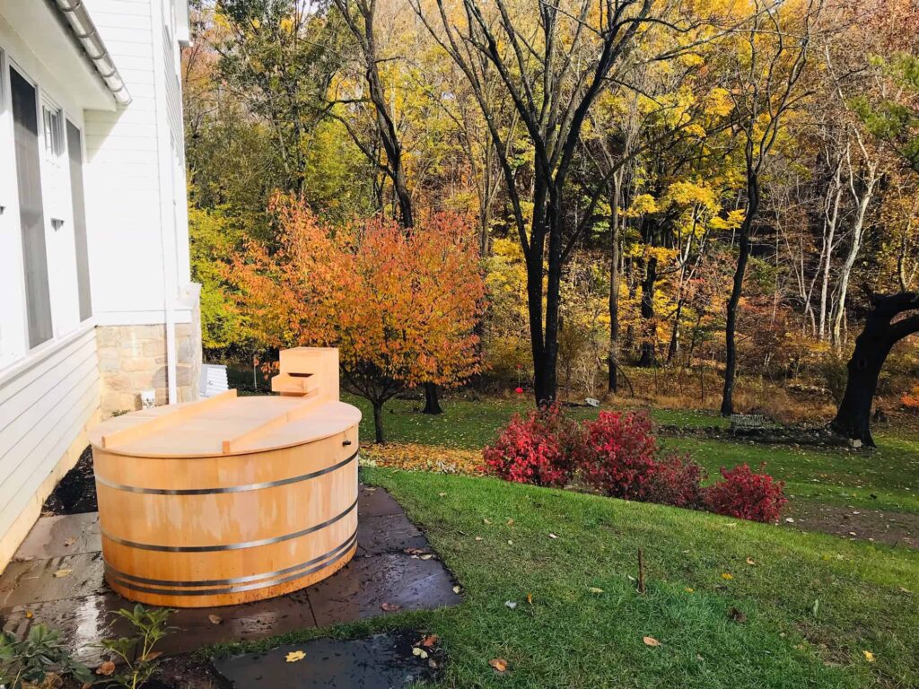 Wooden bathtubs are very lightweight, and the unthinkable can become a reality. If your ofuro is installed in a wet room (simply sitting on the waterproofed floor) and you have a deck outside, you can also consider lifting the tub and moving it indoors or outdoors according to the season and your mood. For this option, it is best if you have a spout in the outdoor locations, but you can also use a hose to fill it up.
