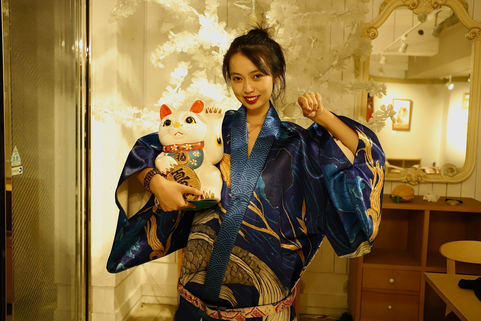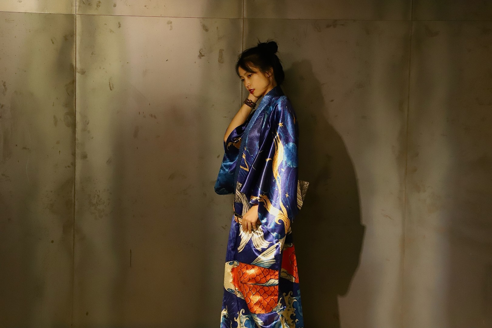 We used 2 different types of fabric for the yukata. A lighter satin for spring/summer and a heavier fabric for autumn winter.